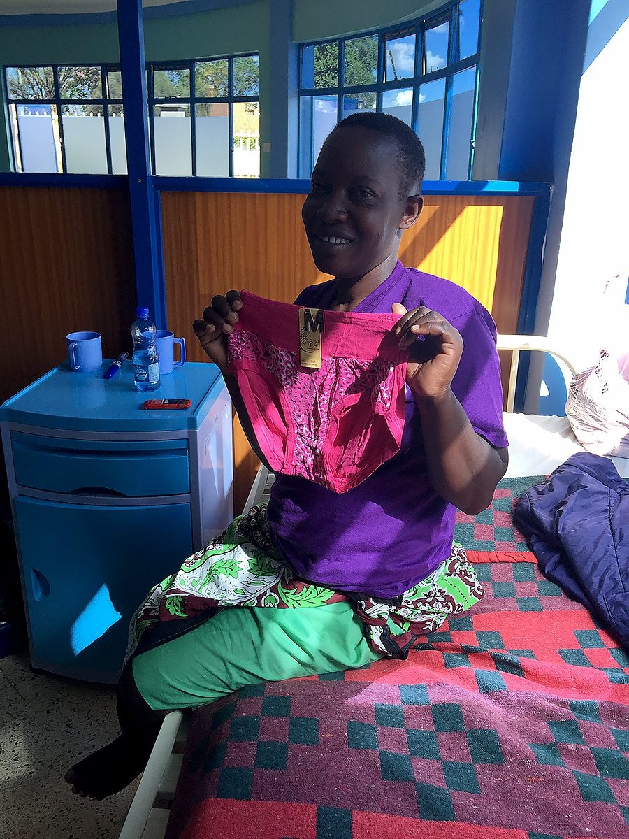 Auch der Frau mit dem Darmverschluss (Metrine) geht es gut. Die Rolle Toilettenpapier auf ihrem Nachttisch ist heute dünner – ein kleiner, aber sehr wichtiger Hinweis. Wir lernen, auf solche Details noch genauer zu achten. Schwierig wird es dann am Bett einer weiteren Patientin. Als wir erklären müssen, dass wir sie erst bei unserem nächsten Besuch im Gynocare Hospital mit speziellen Instrumenten operieren können, fließen bittere Tränen. Wir sind sehr betroffen und stehen hilflos an ihrem Bett. Zum Glück springt Evelyn beherzt ein, schließt die Frau liebevoll in ihre Arme und tröstet sie auf Kiswahili. Diese große Enttäuschung zu mildern, das hätten wir nicht geschafft. Auch das Klinikpersonal scheint sehr glücklich über Evelyns Unterstützung zu sein.